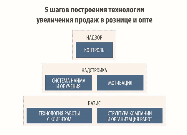 Схема 1: 5 шагов построения технологии увеличения продаж в опте и в рознице
